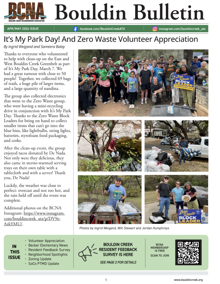 Click here for the latest Bouldin Creek Neighborhood Association Bulletin.